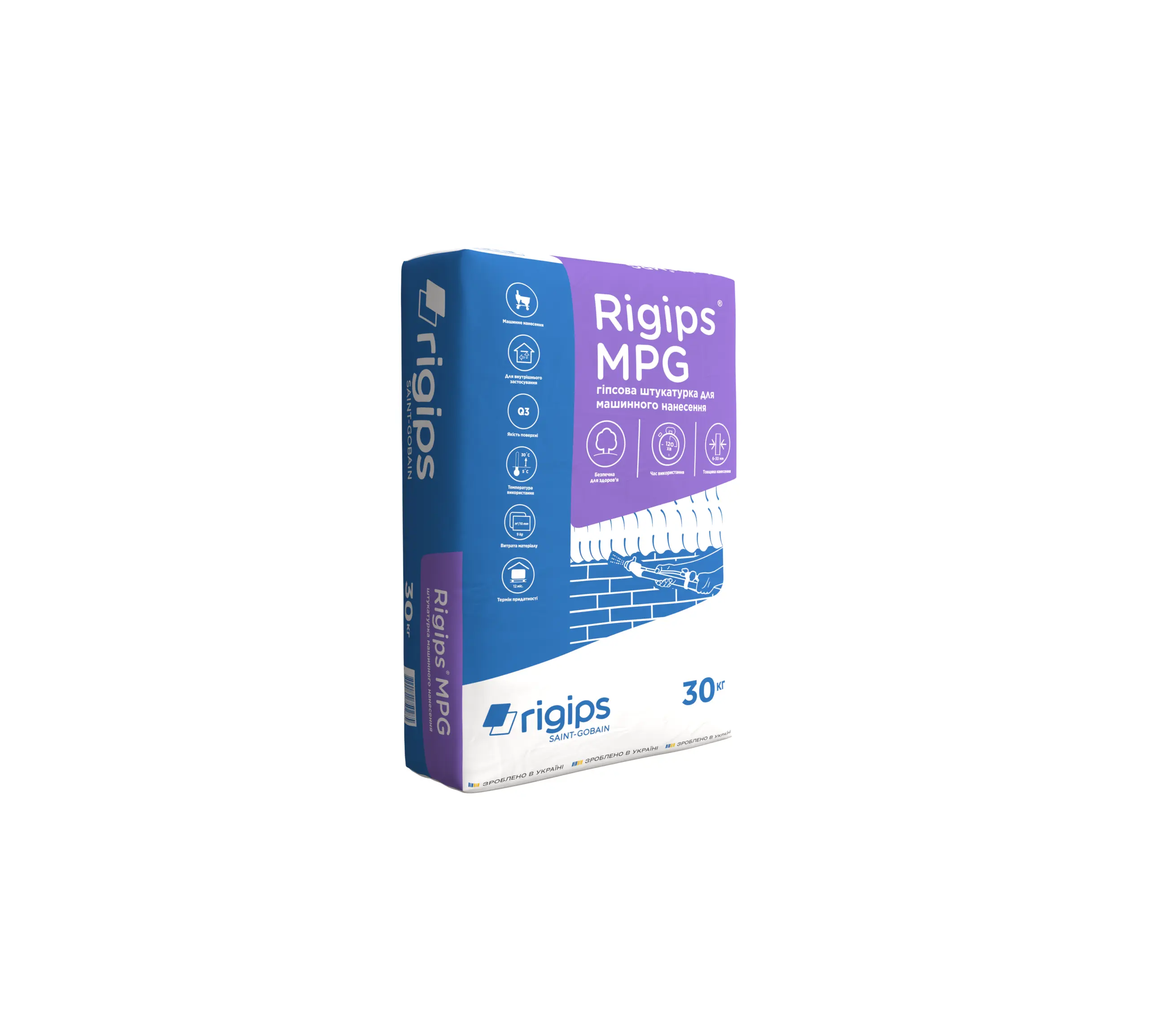 Штукатурка гіпсова RIGIPS MPG (машинного нанесення), 30кг – це гіпсова штукатурка машинного та ручного нанесення для базового вирівнювання стін та стель всередині приміщень. Завдяки використанню високоякісної сировини штукатурка має білий колір та підвищенні фізико-механічні властивості, що значно полегшує роботу та експлуатацію готового покриття.